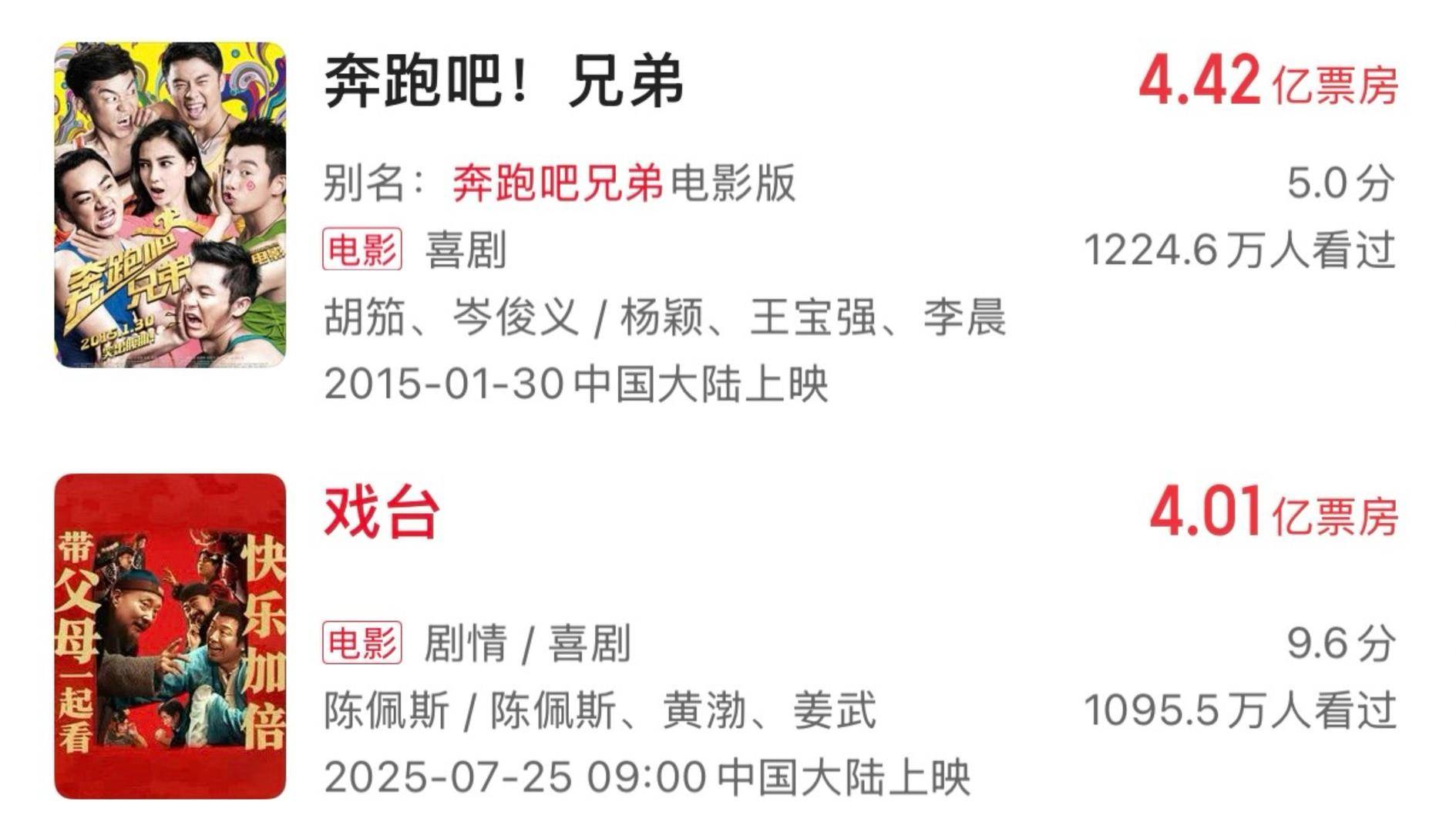 2015年,徐峥的《港囧》票房略胜沈腾的电影首作《夏洛特烦恼》,但前者口碑崩塌,后者口碑爆棚。待到9年后的暑期档,沈腾凭《抓娃娃》的33.27亿元成为档期之冠、年度票房第三,反观徐峥的《逆行人生》却以3.59亿元票房黯然落幕。