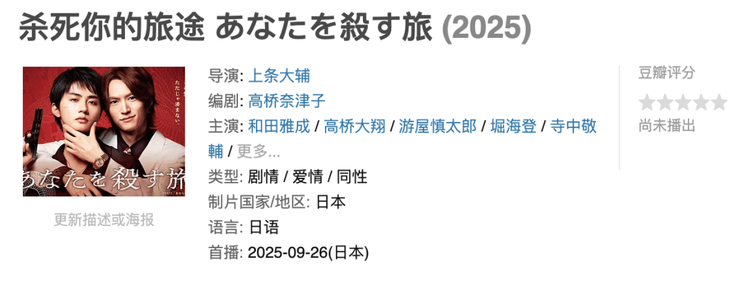 本剧改编自同名漫画,义气深重的若头片冈(和田雅成 饰),因帮派内斗,被组长之子桐井(游屋慎太郎 饰)下令外出避风头。随行的组员小田岛(髙桥大翔 饰),表面是司机与随从,暗中却肩负“杀掉片冈”的密令。怀着憎恨与复仇心,他与片冈踏上两人旅途,却渐渐被片冈的真诚与人情味吸引。冷漠的小田岛也展露出意外一面,二人距离悄然拉近。使命与感情交错,最终等待他们的将是死亡,还是爱?一段危而不堪、却又动人的任侠爱情故事。