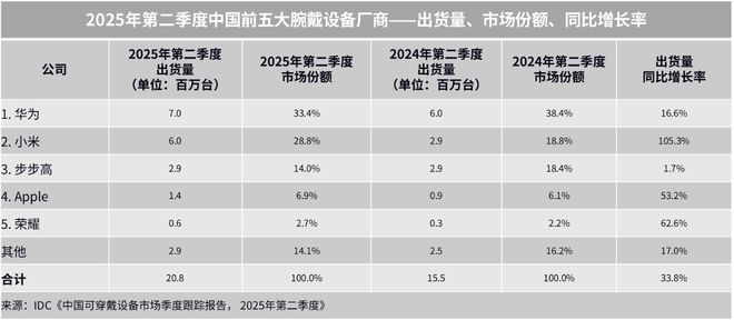 9月9日知名数据调研公司IDC正式发布了,2025年第二季度中国腕带设备市场报告。