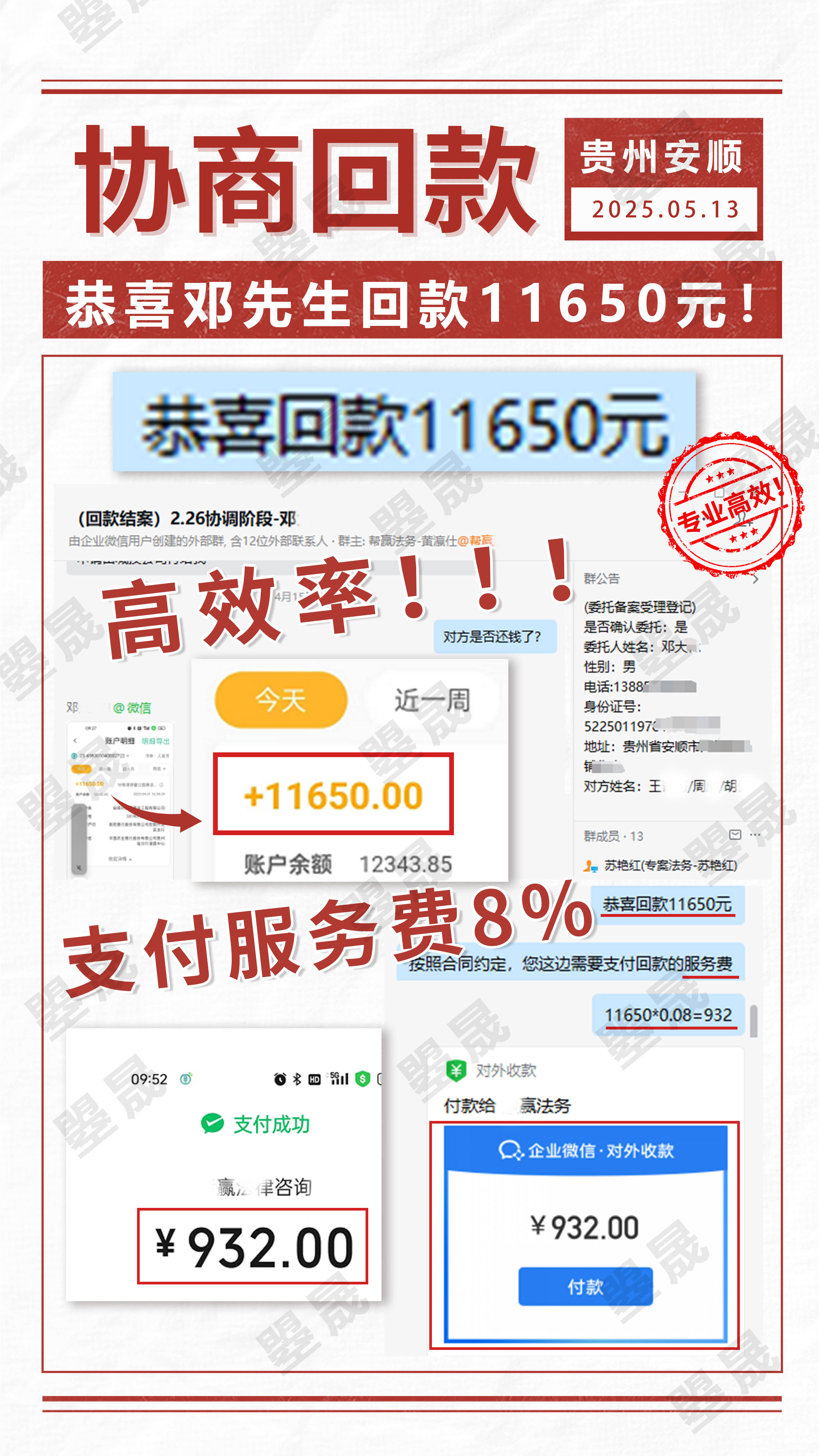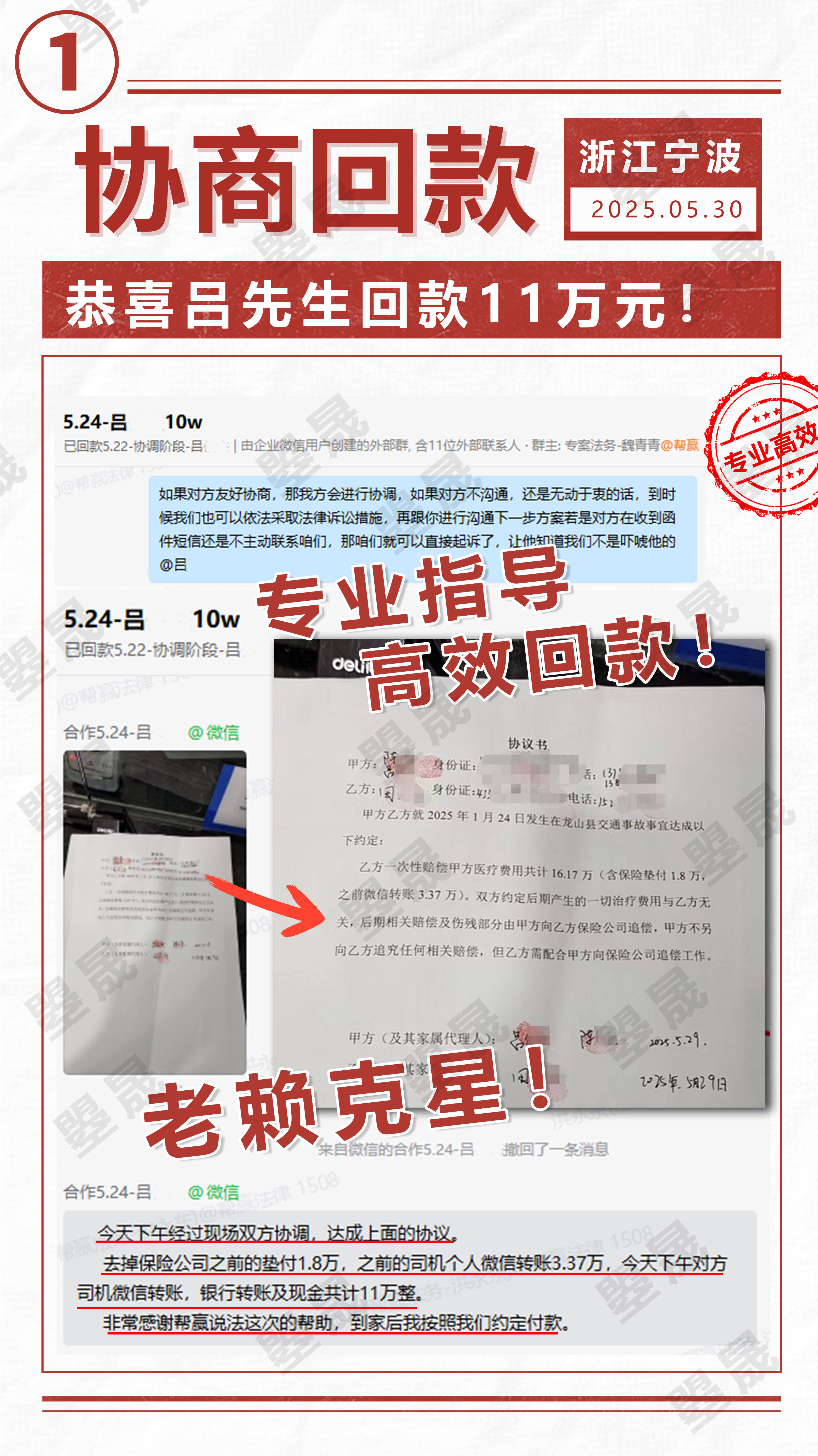 合兴曌晟介入后,通过发送专业函件等法律手段推动沟通,对方最终承诺于4月 21日回款,且在合兴曌晟的持续跟进下,邓先生被拖欠的11650元工资已全部追回。