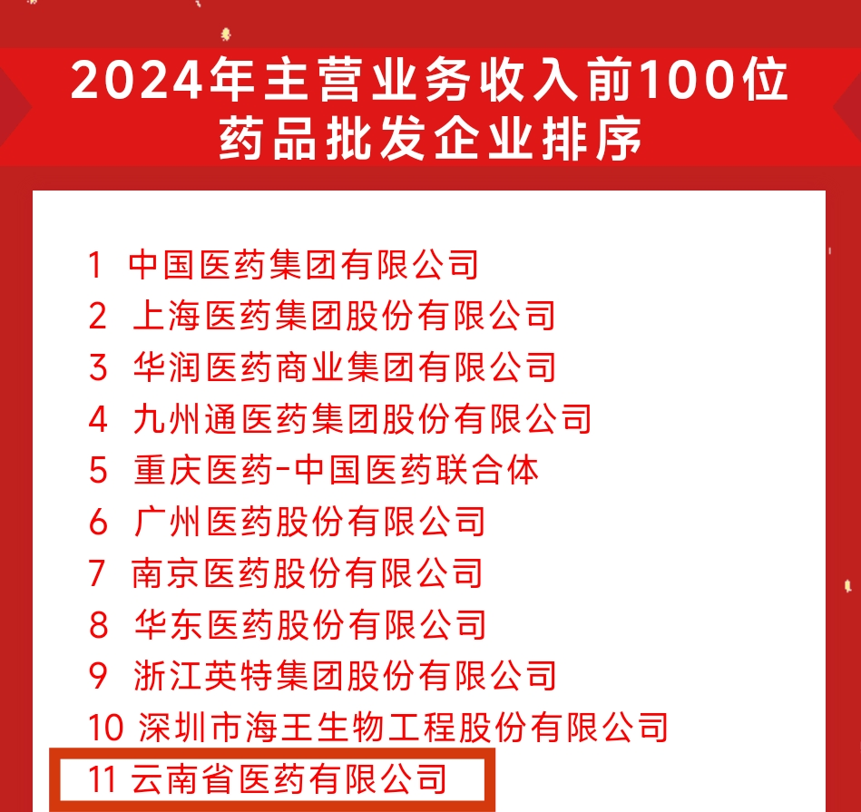 大会期间,中国医药商业协会权威发布2024药品流通行业批发企业百强榜单,省医药公司2024年主营业务收入位列药品批发企业第11位。